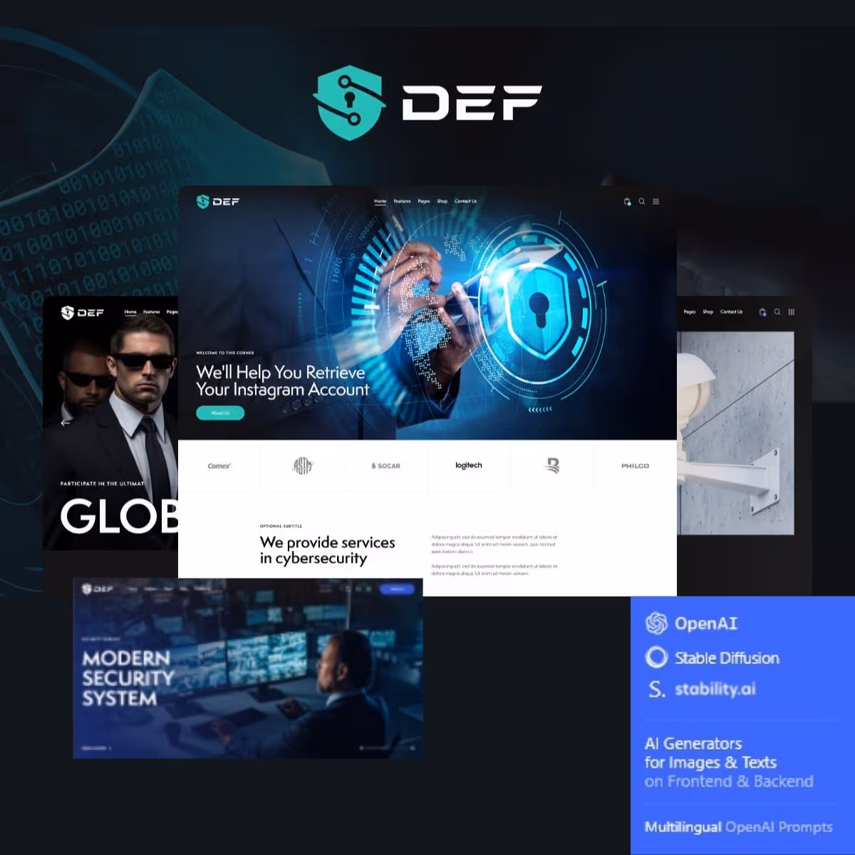 Def is a specialized WordPress theme built to help security businesses establish authority and trust online. With its strong visual identity, conversion-focused layouts, and SEO optimization, it helps you attract more clients and grow your security services business effectively.