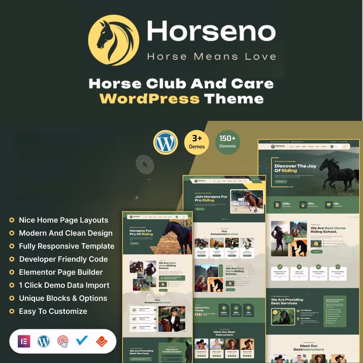 Horseno provides a specialized WordPress theme for the equestrian world. The design combines outdoor imagery with structured business layouts, creating a web presence that resonates with horse enthusiasts while providing practical information for riders and members.